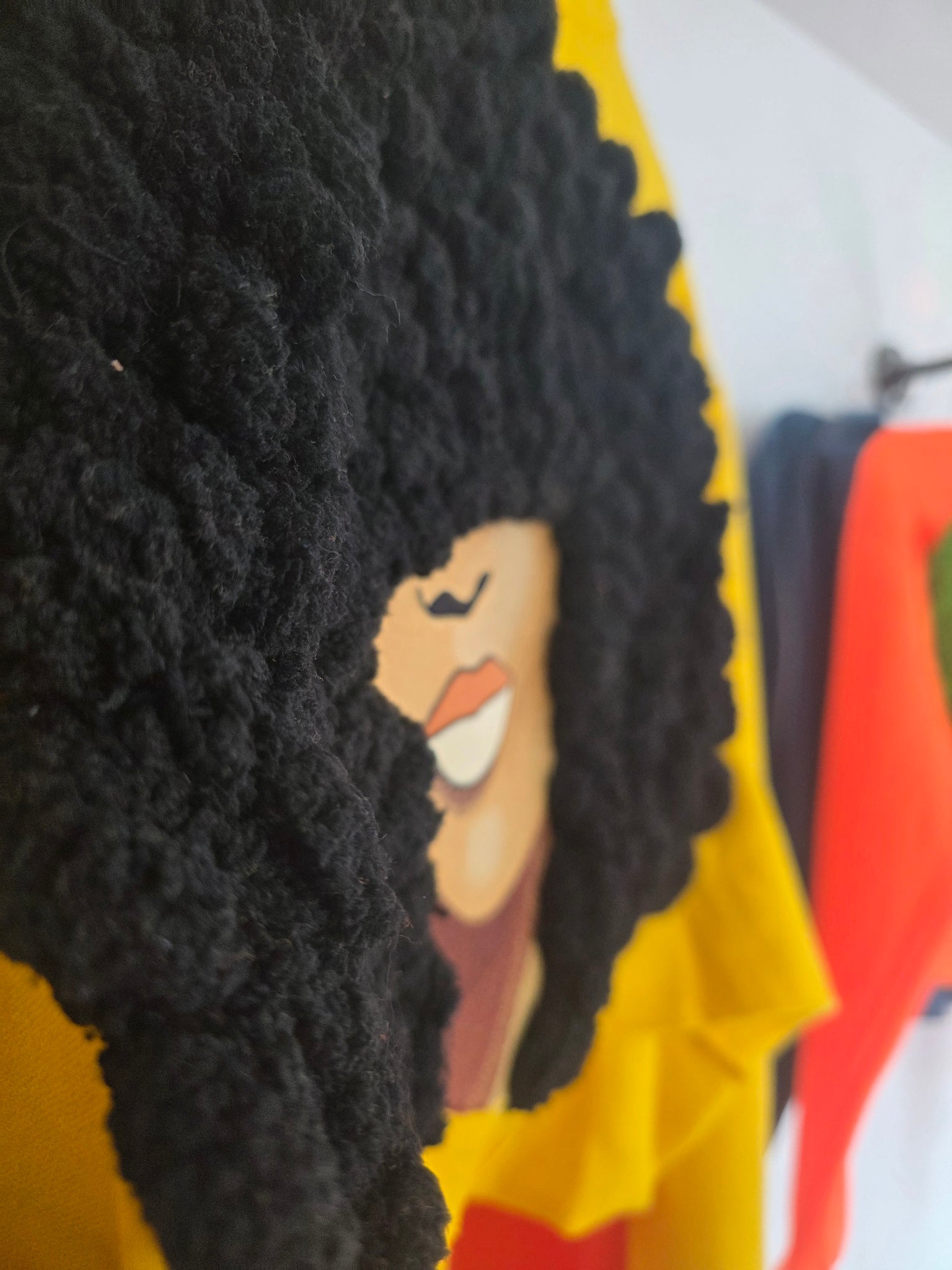 This Hoodie 6 is a stylish and versatile addition to your wardrobe. Made with a vibrant yellow crop top and a black afro design, this hoodie is perfect for any casual or athletic activity. Available in size XL, it offers both comfort and fashion. Upgrade your style with this must-have piece.