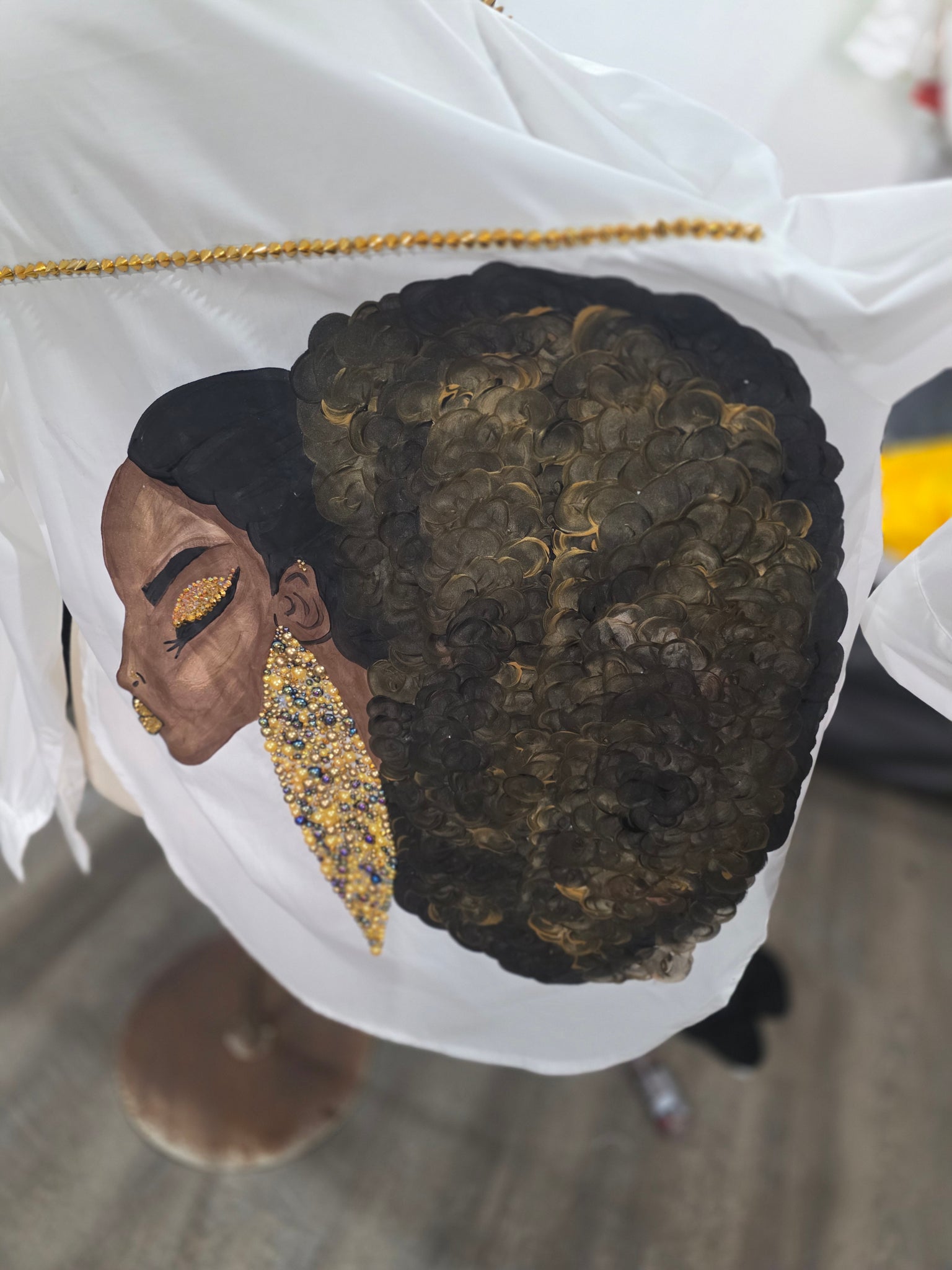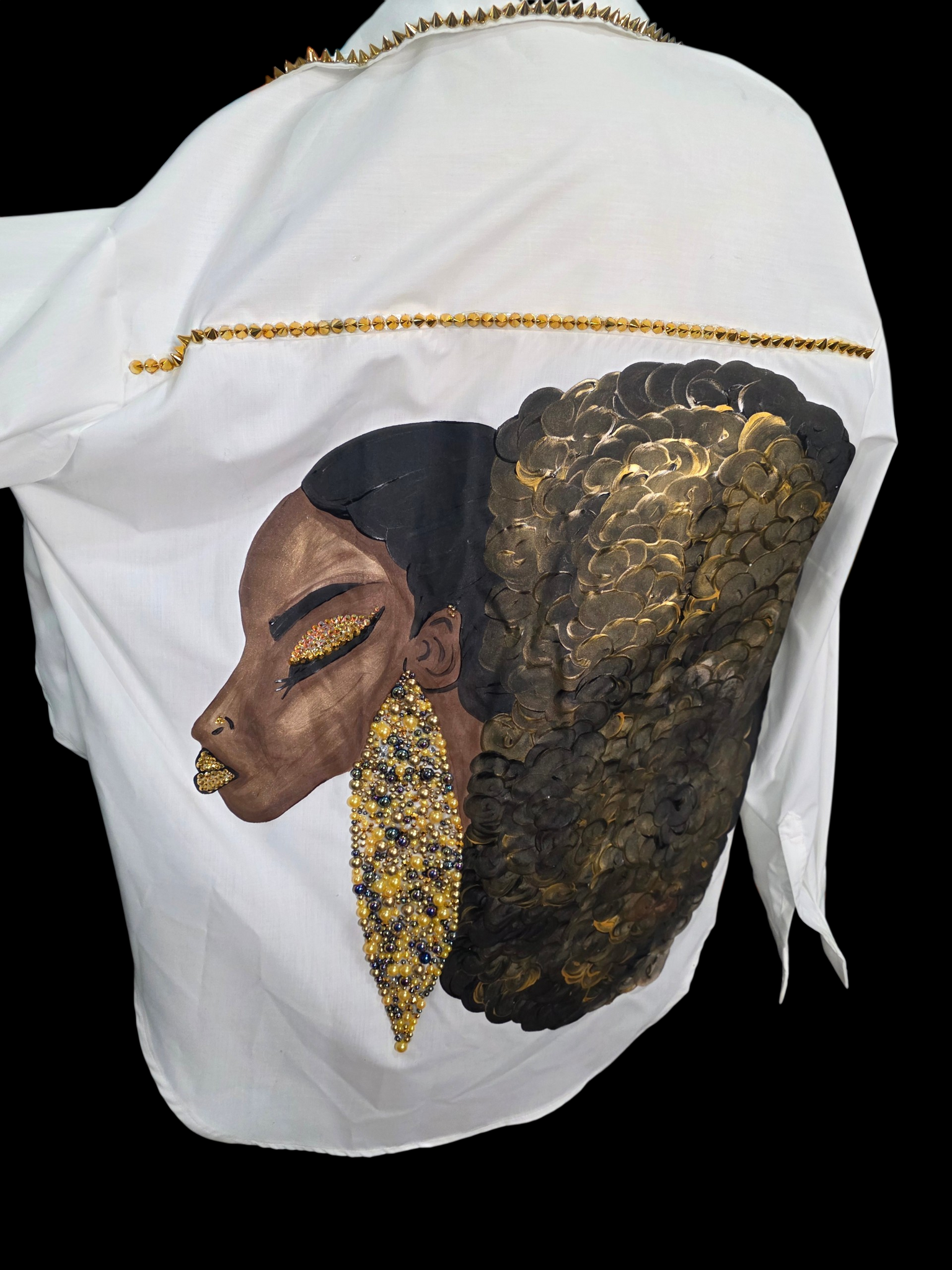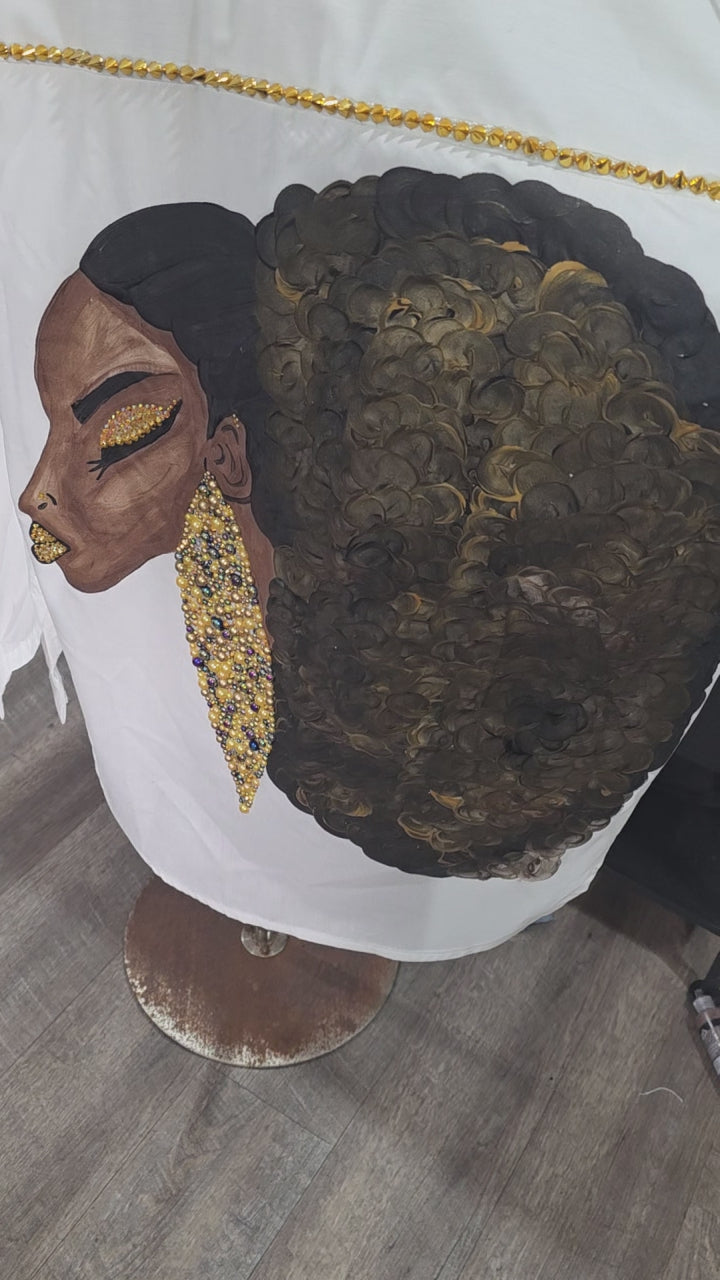 Discover the artistic charm of Ms Baron, a unique piece from our exclusive collection. Handpainted with meticulous detail, her bling earrings and striking lips bring a vibrant touch to any space. Embrace the beauty of handcrafted artistry and let your decor speak volumes! Wash in cold water and hang dry to maintain its stunning appeal.